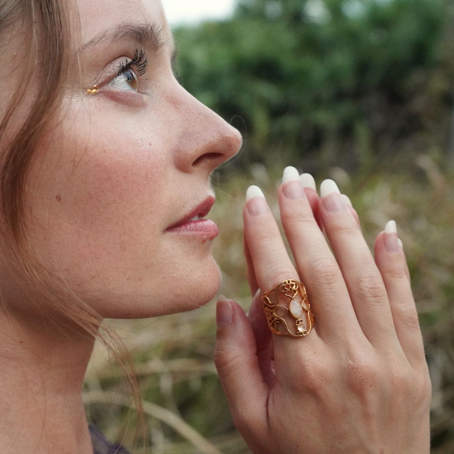 It gives me the feeling i'm wearing a piece of Greek mythology on my finger. The moonstones are gorgeous. Love this ring so much!