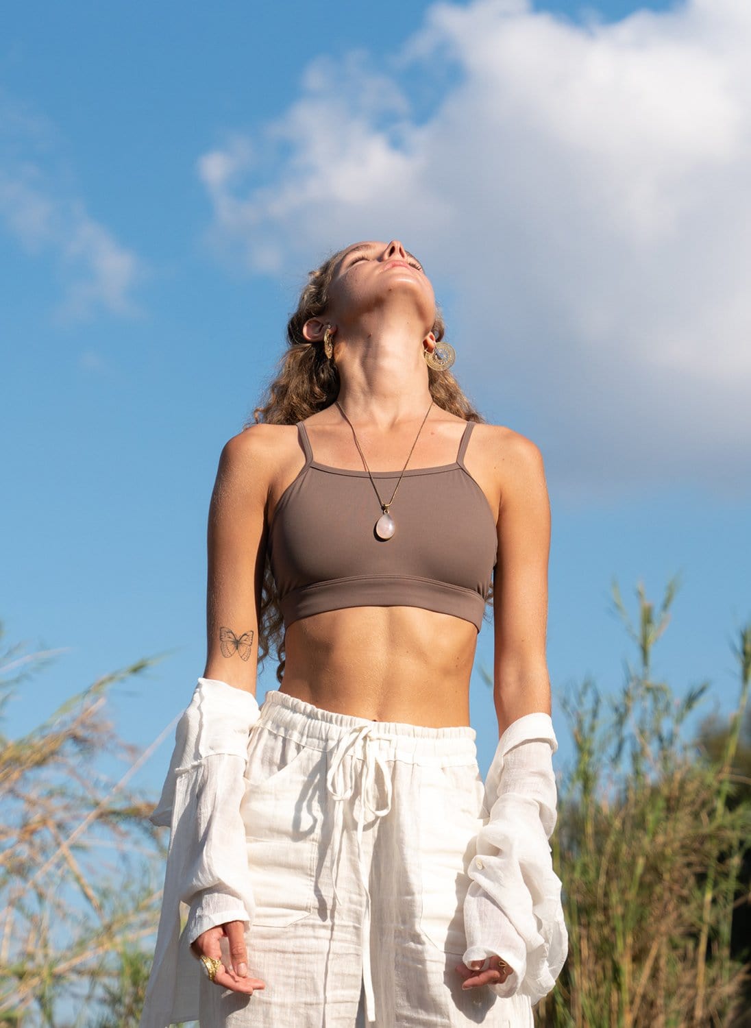 The Ariel yoga top, meaning Lion of God, features a unique, feminine design. Ignite the fire within you so you can transcend it on your yoga mat and in your everyday life.