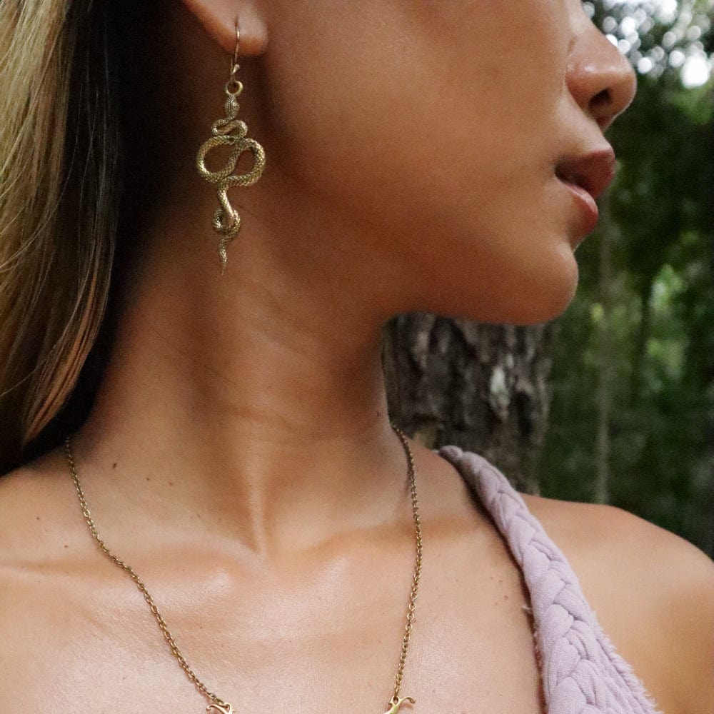 The Serpentine Spirit earrings are a unique and mystical accessory that brings a touch of the spiritual world to your everyday look. These earrings are made with high-quality materials and feature a beautiful serpent design, symbolizing the power of transformation and wisdom.