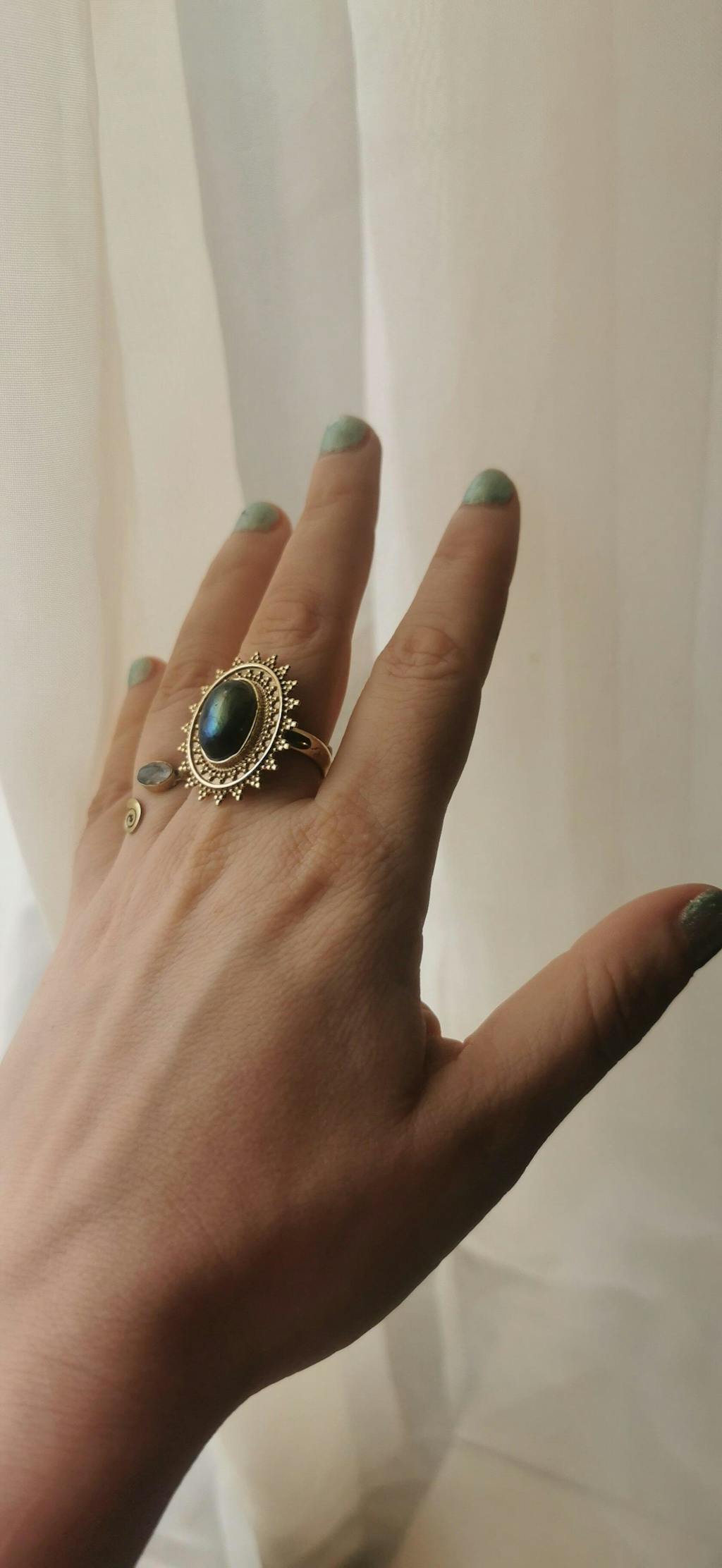 The labradorite stone is absolutely captivating. Its deep blue reminds me of the ocean, rich and mysterious, like looking into deep water where light slowly fades. The colour shifts so beautifully, and it draws your eyes in every time.
